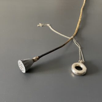アクセサリーはこれひとつで、コーディネイトに力強さと奥行きを与えます。